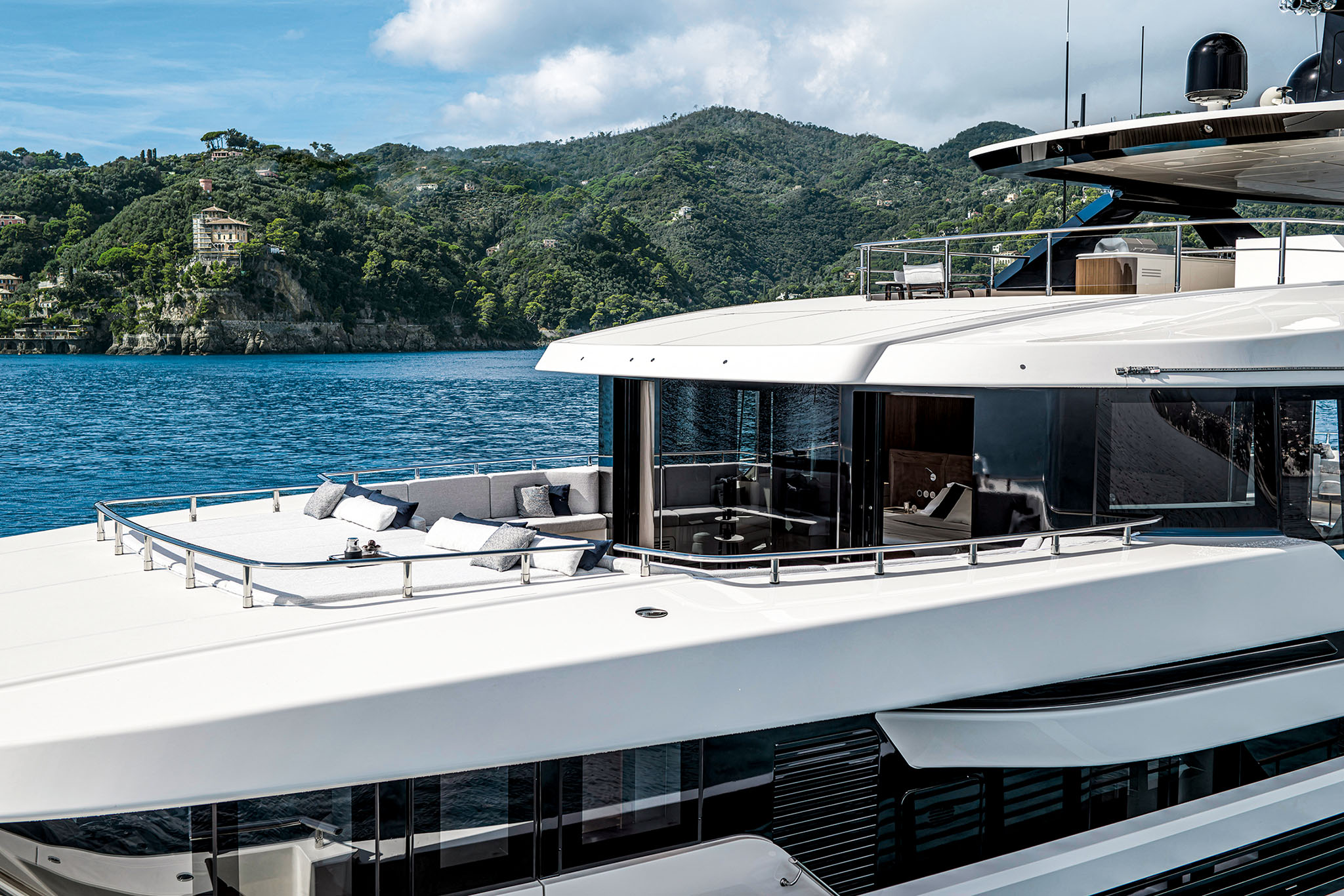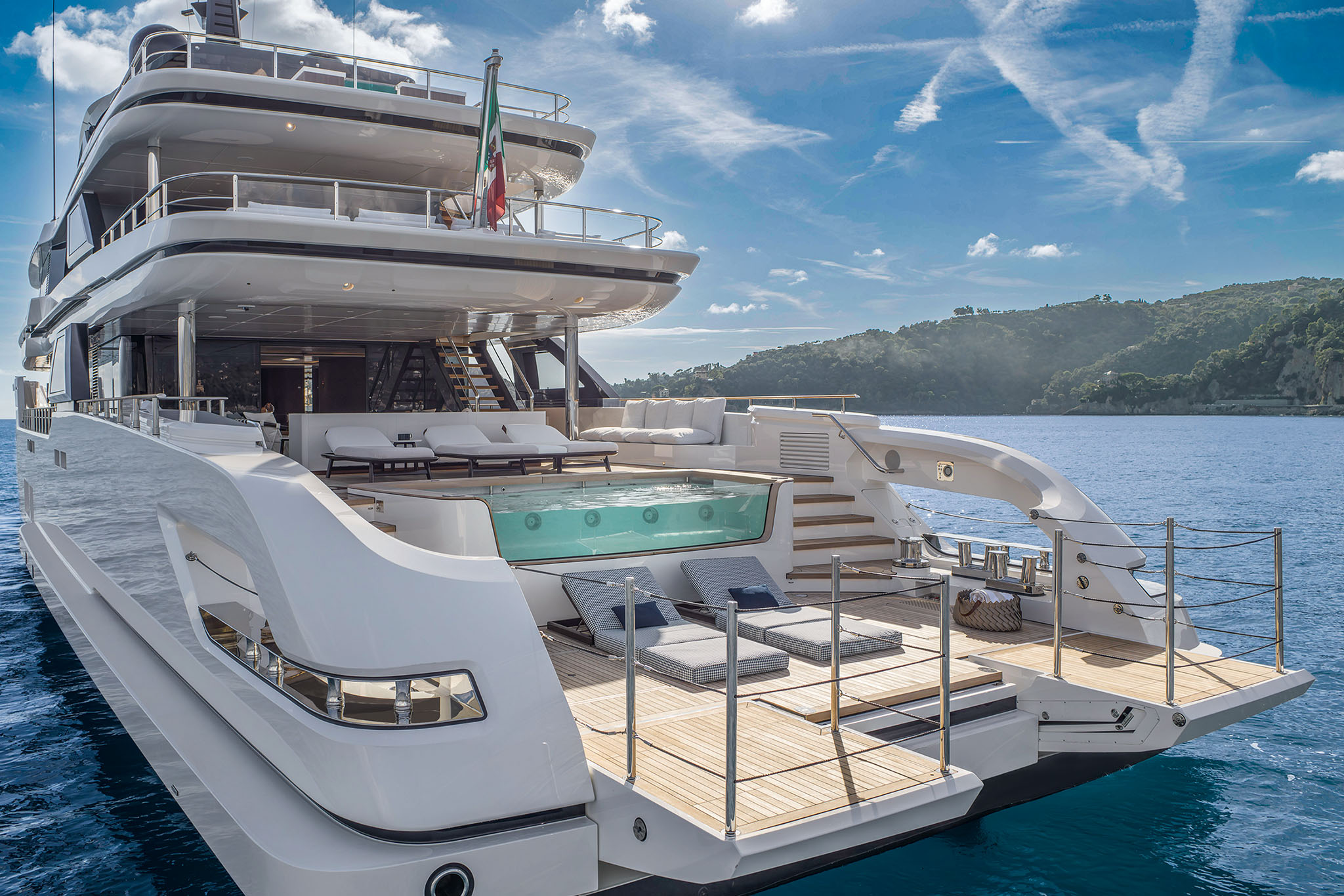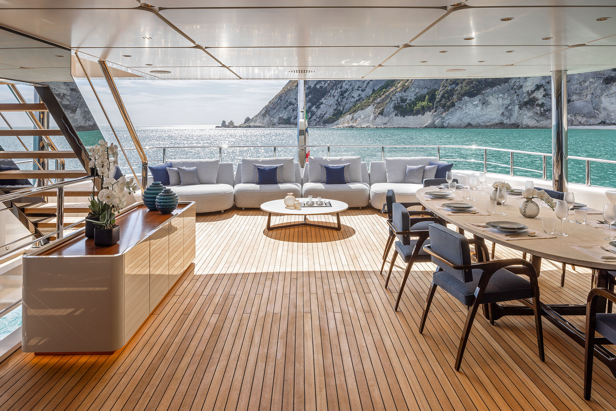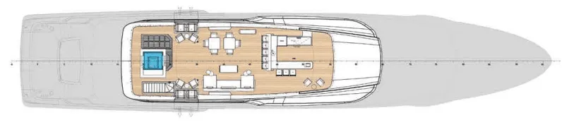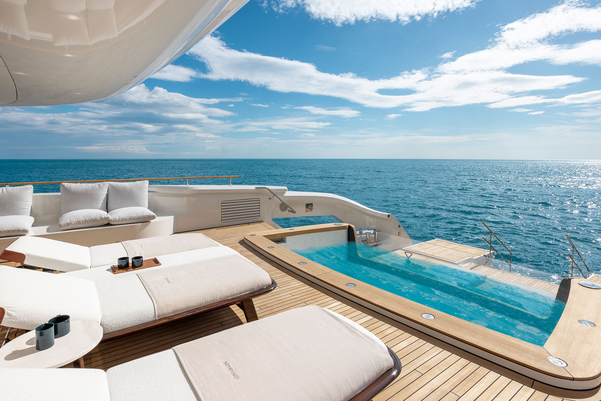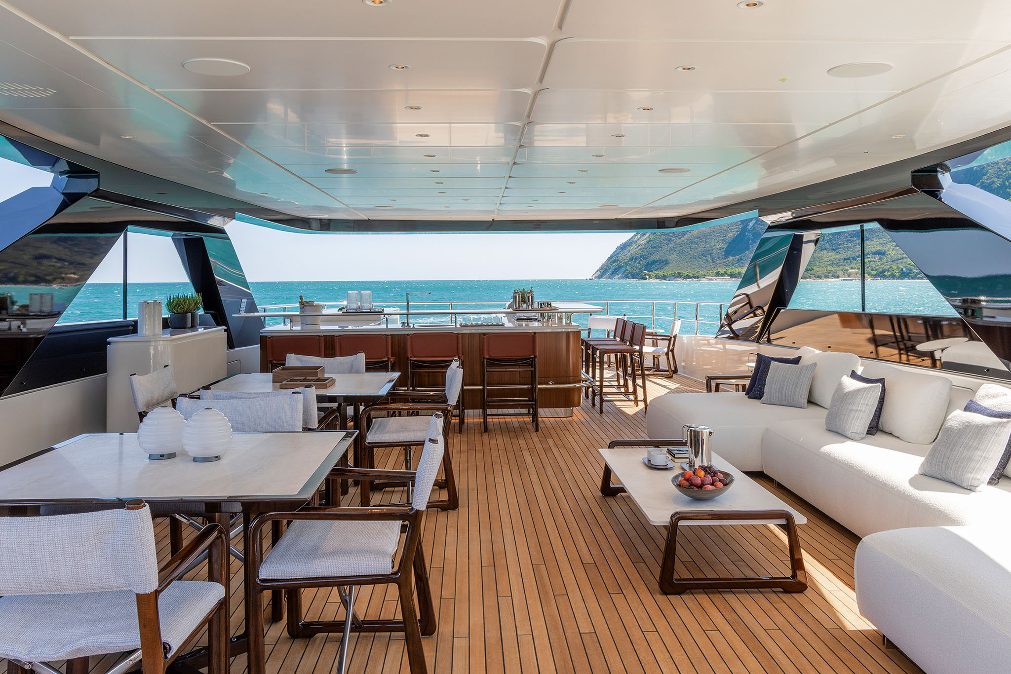 Other key features of the Navetta 50 is the capacious sun deck and transformable stern. The stern follows a similar design to that found on the Ferretti Group flagship CRN superyachts.