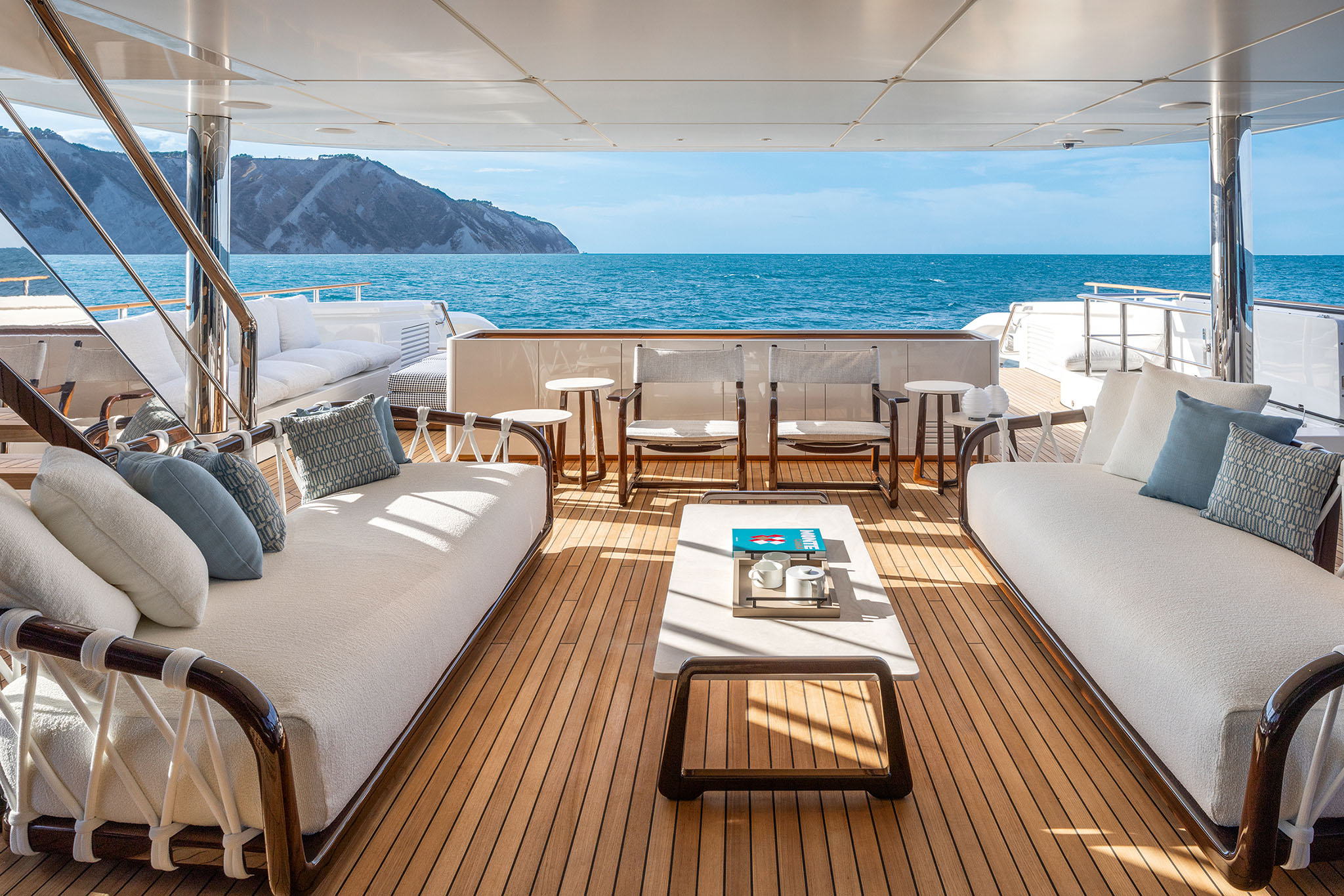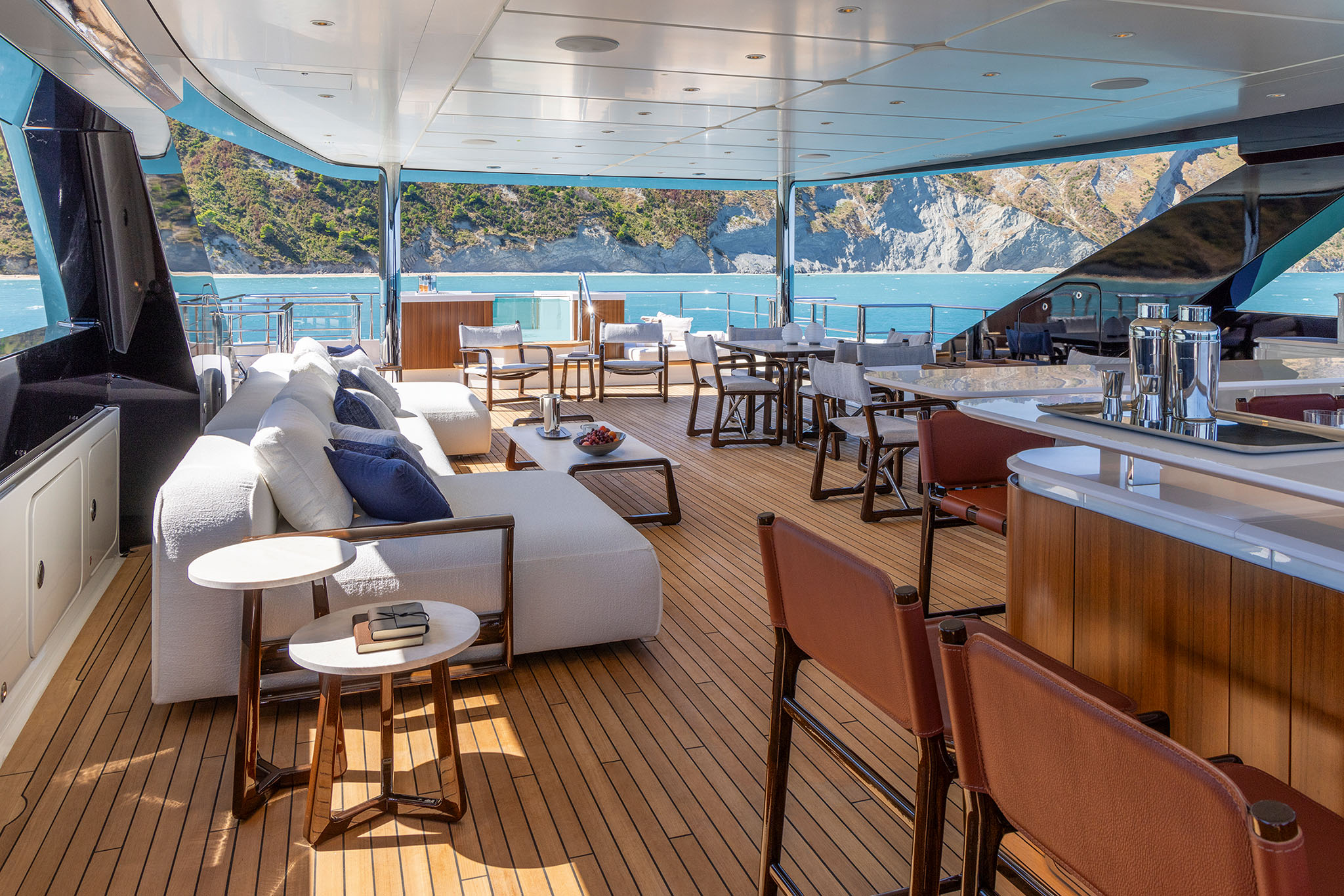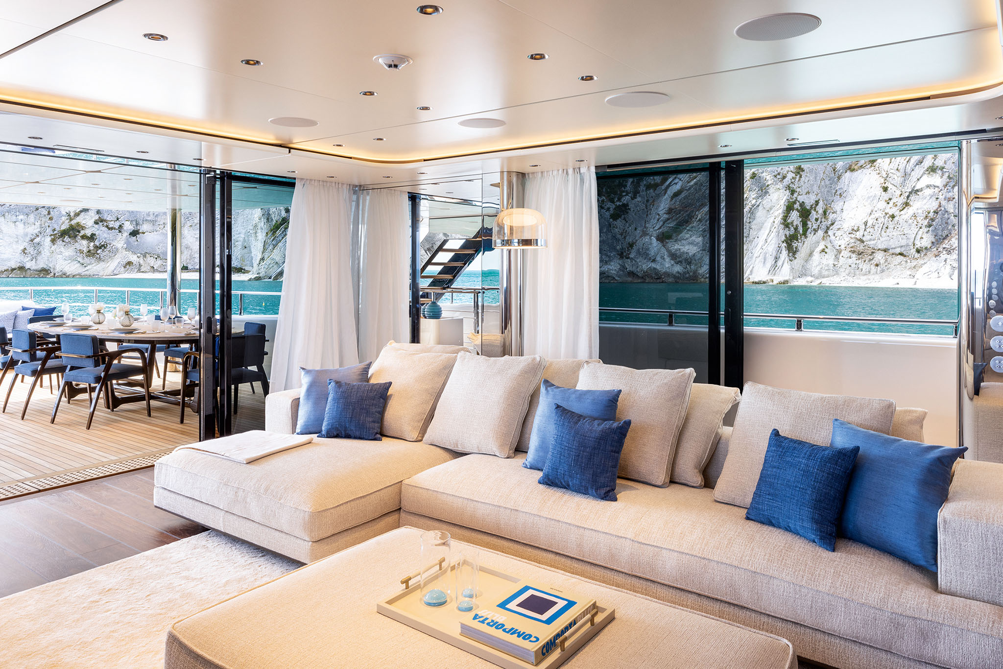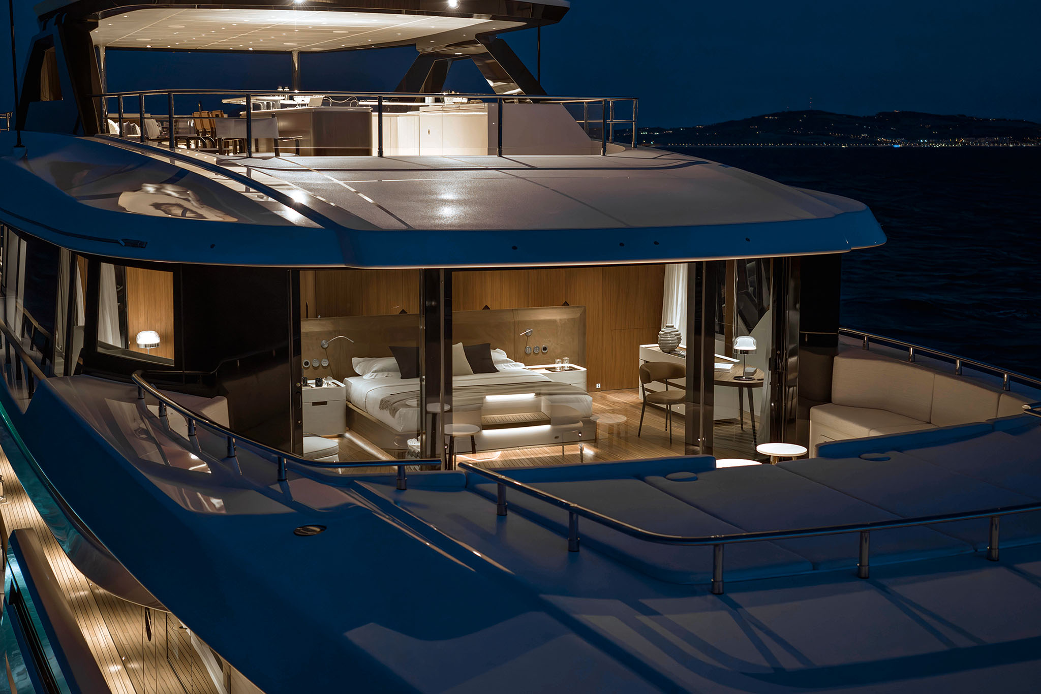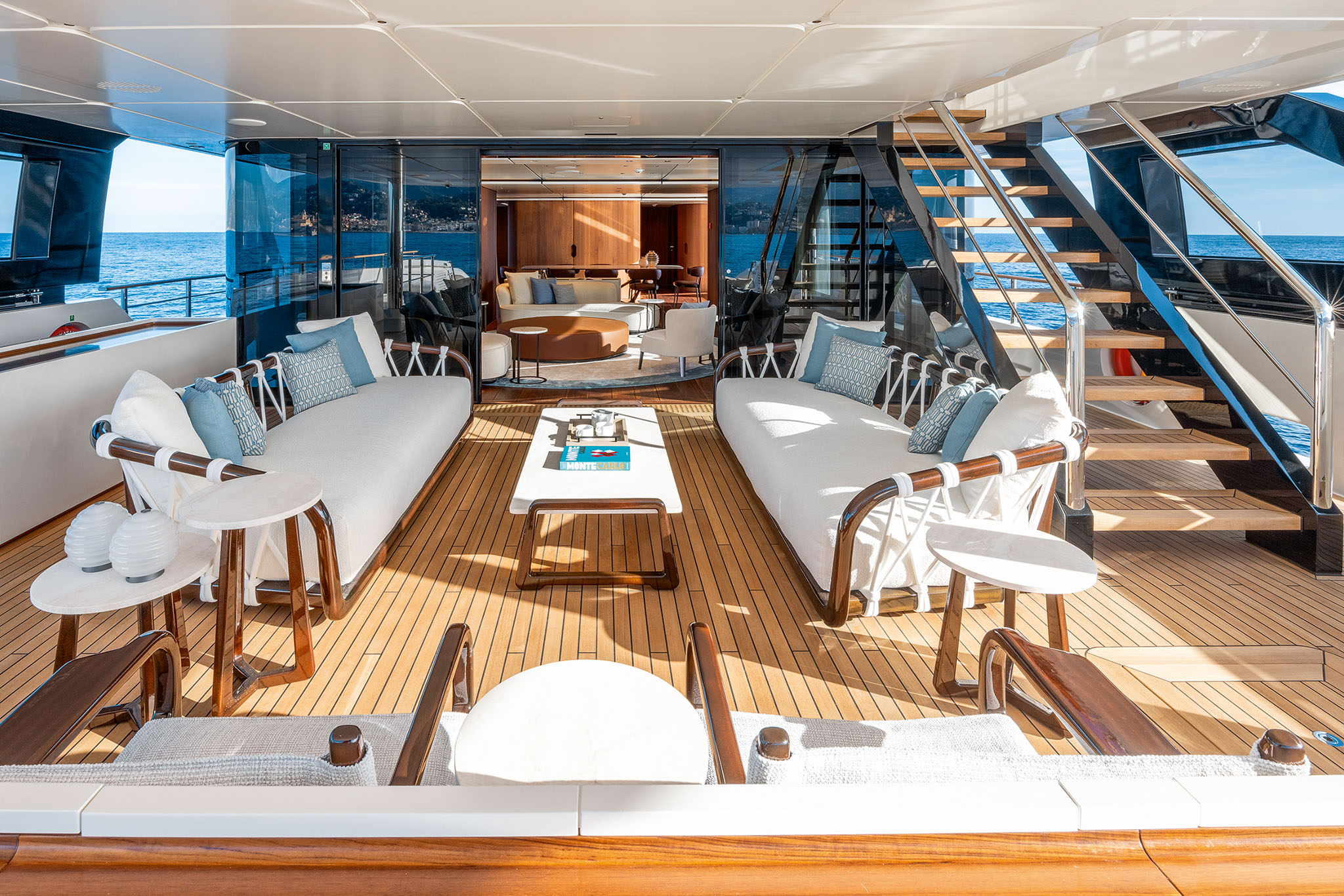 Other key features of the Navetta 50 is the capacious sun deck and transformable stern. The stern follows a similar design to that found on the Ferretti Group flagship CRN superyachts.