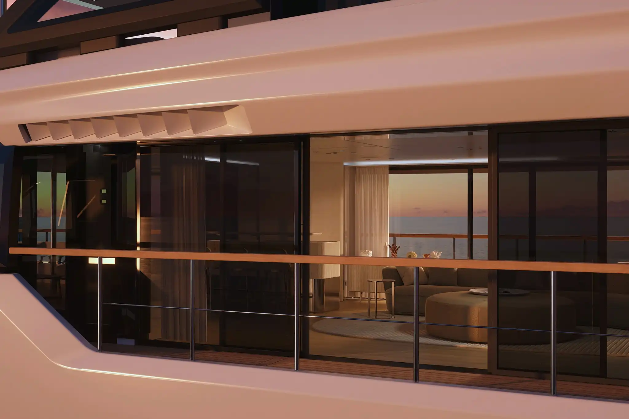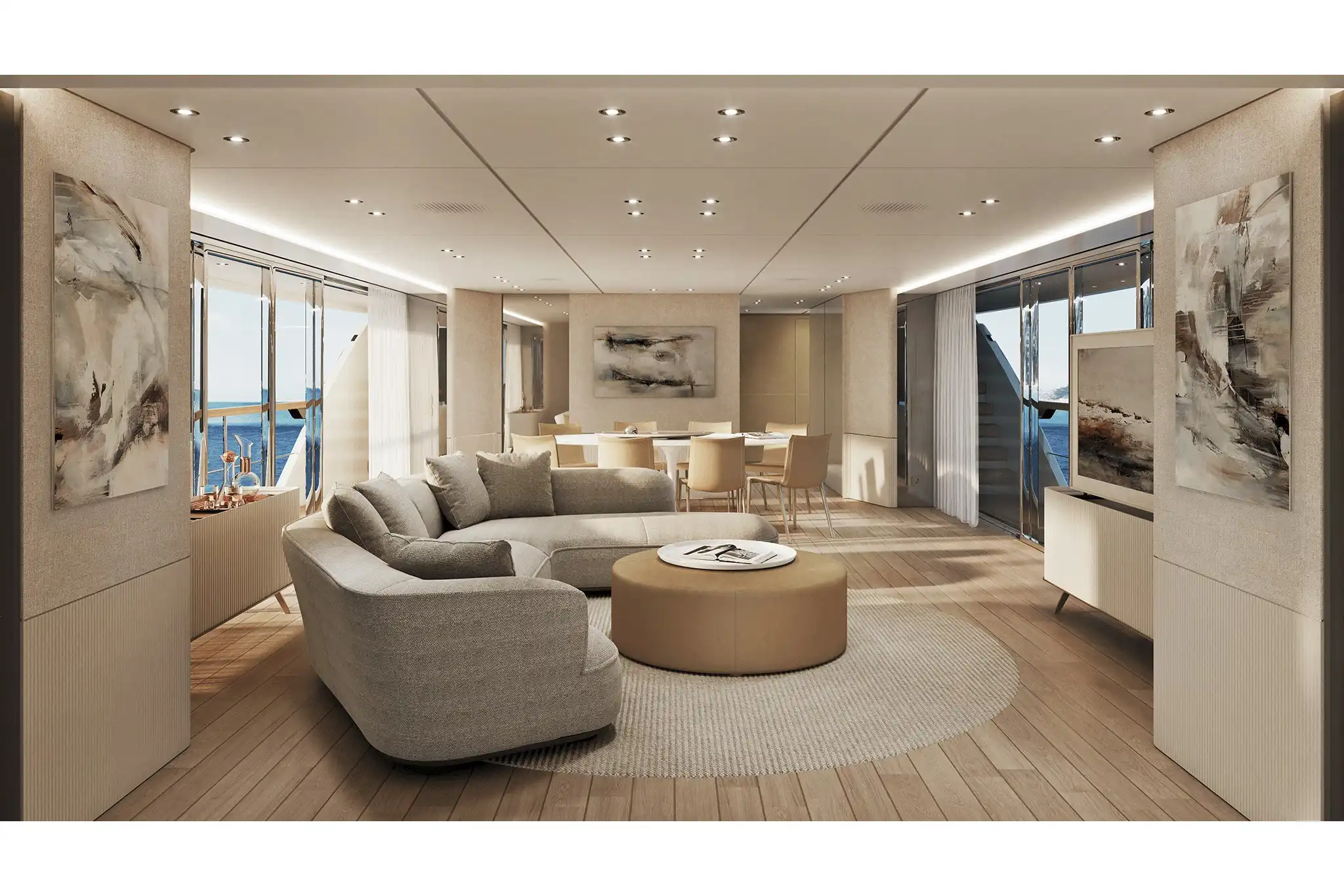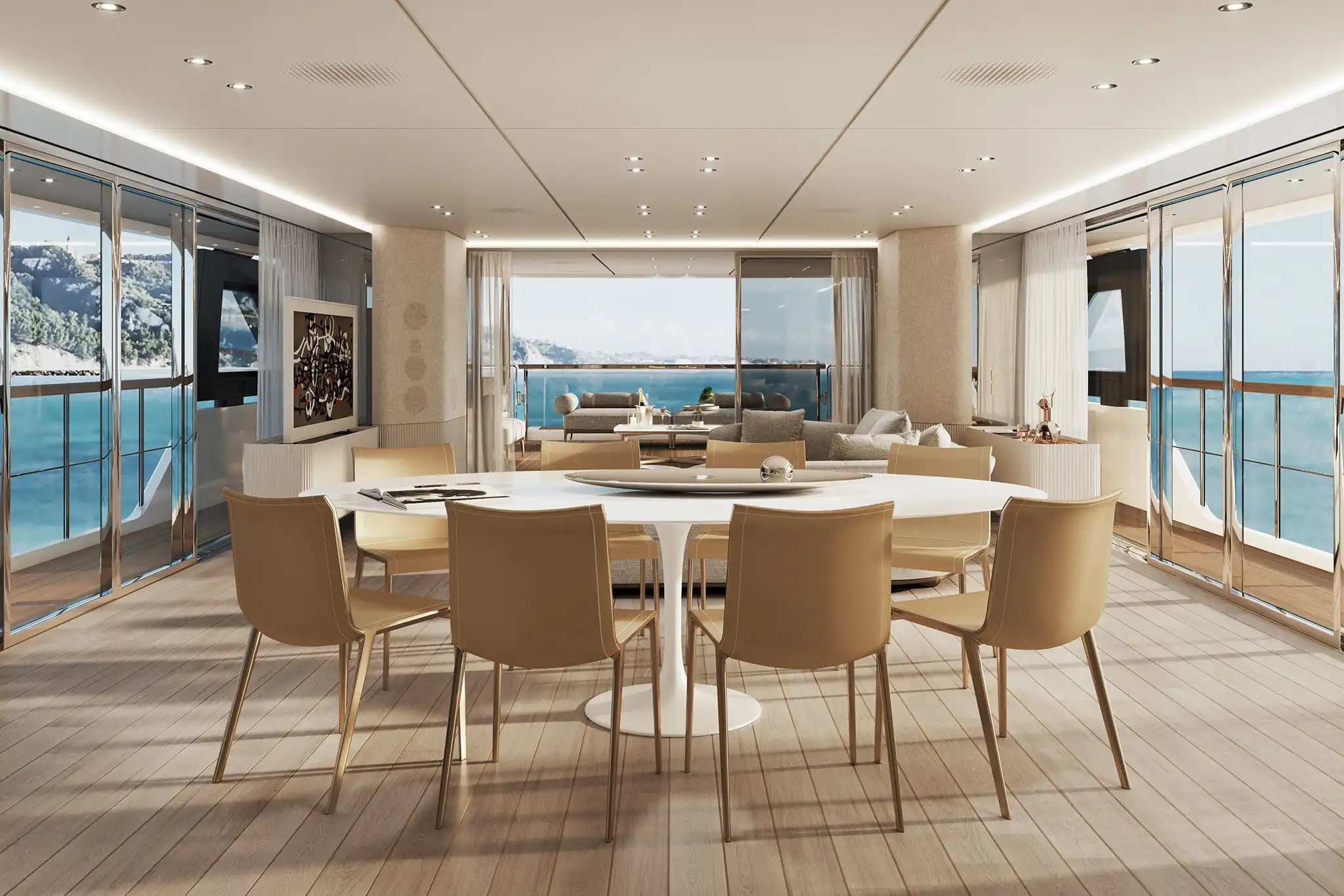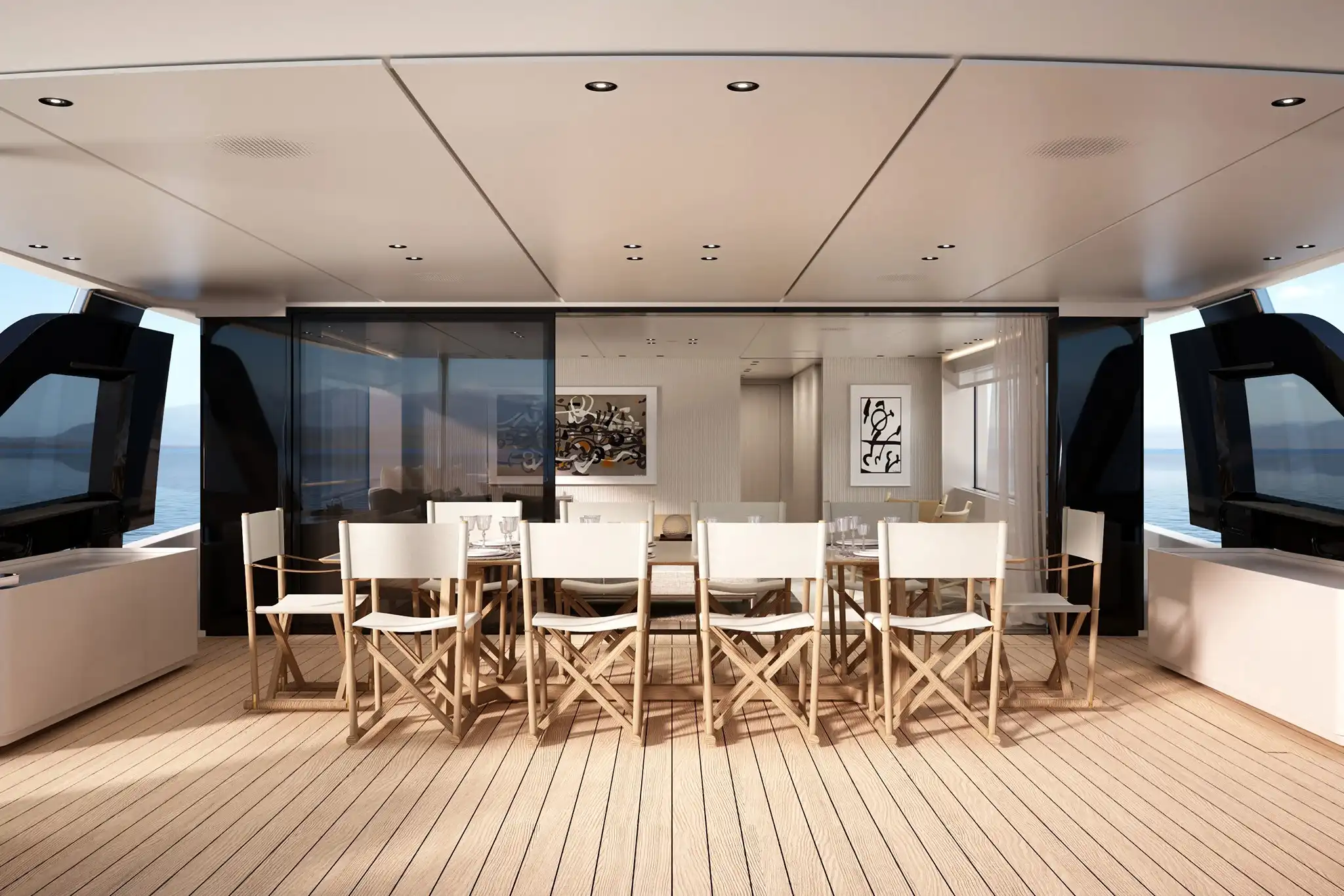 The extra size of this model allows for more extended deck areas and tiered aft spaces that creates a closer connection between outdoor lounge areas and interior spaces, a clear nod to the demands of new market trends.