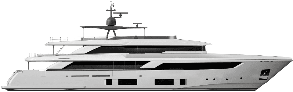 At 137ft overall, the magnificent four-deck Navetta 42 is the new flagship for Custom Line’s famously smooth and astonishingly quiet Navetta series of semi-displacement yachts. She is also the first ever Custom Line yacht over 40m.