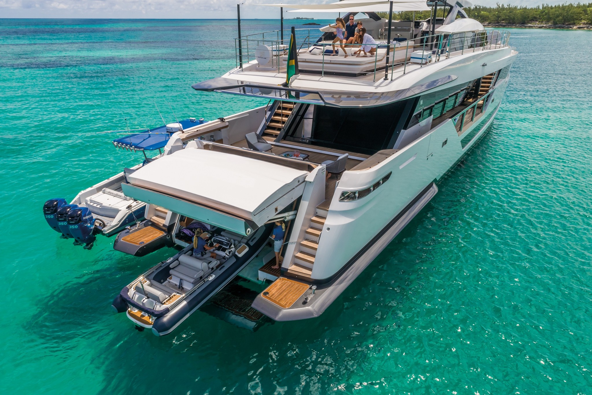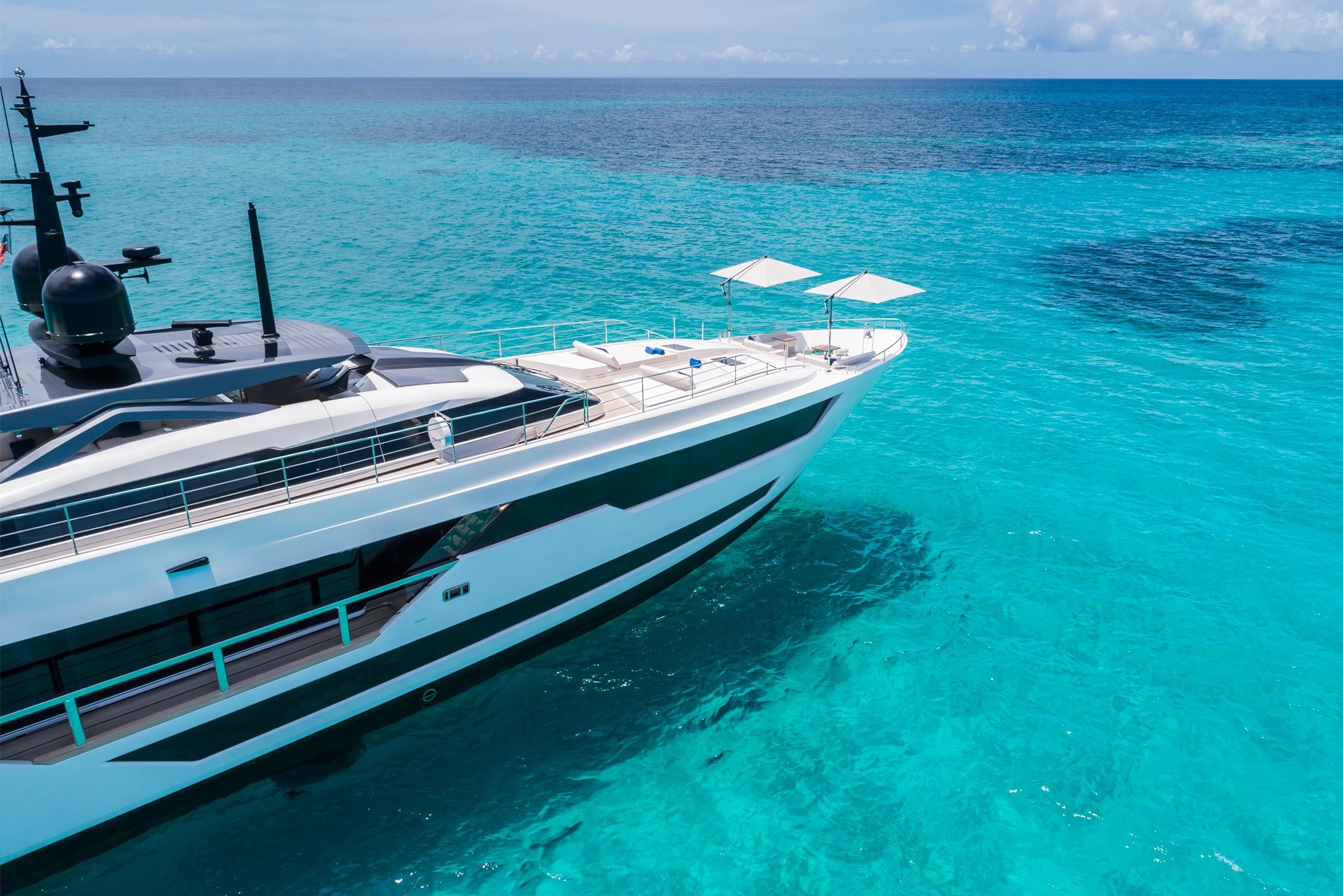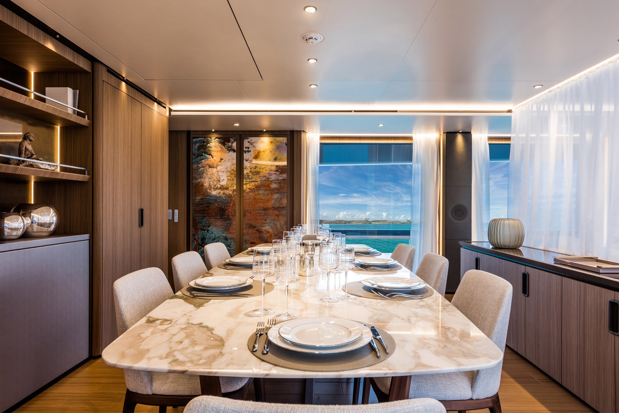 Enjoyment for everyone on board is always the top priority in any Custom Line design, and that's clearly evident in the magnificent new Custom Line Saetta 120. There are terrific views from wherever you are on this fast cruising, semi-custom superyacht, but particularly the main saloon with its huge windows looking out through cut-down bulwarks.