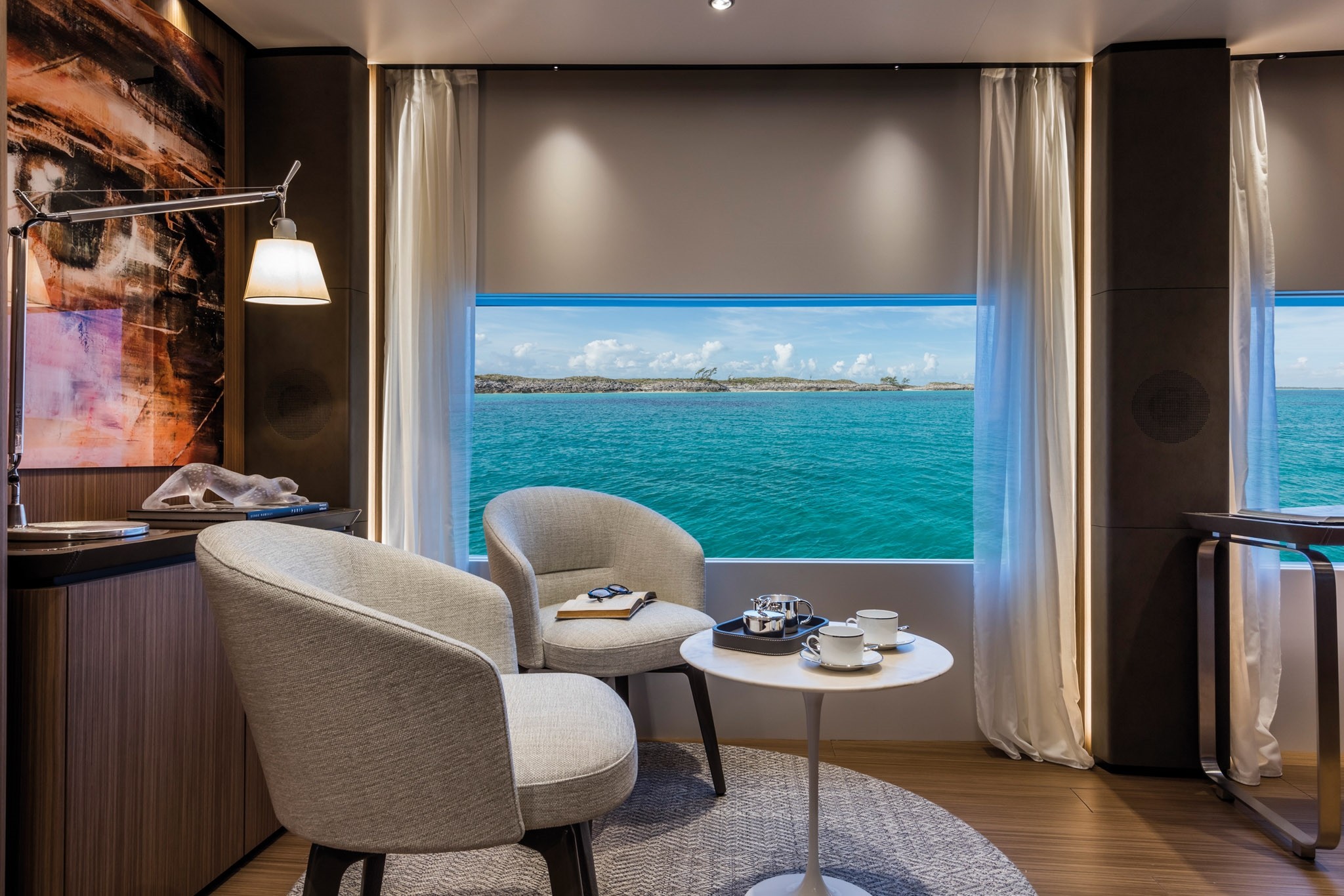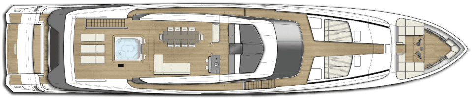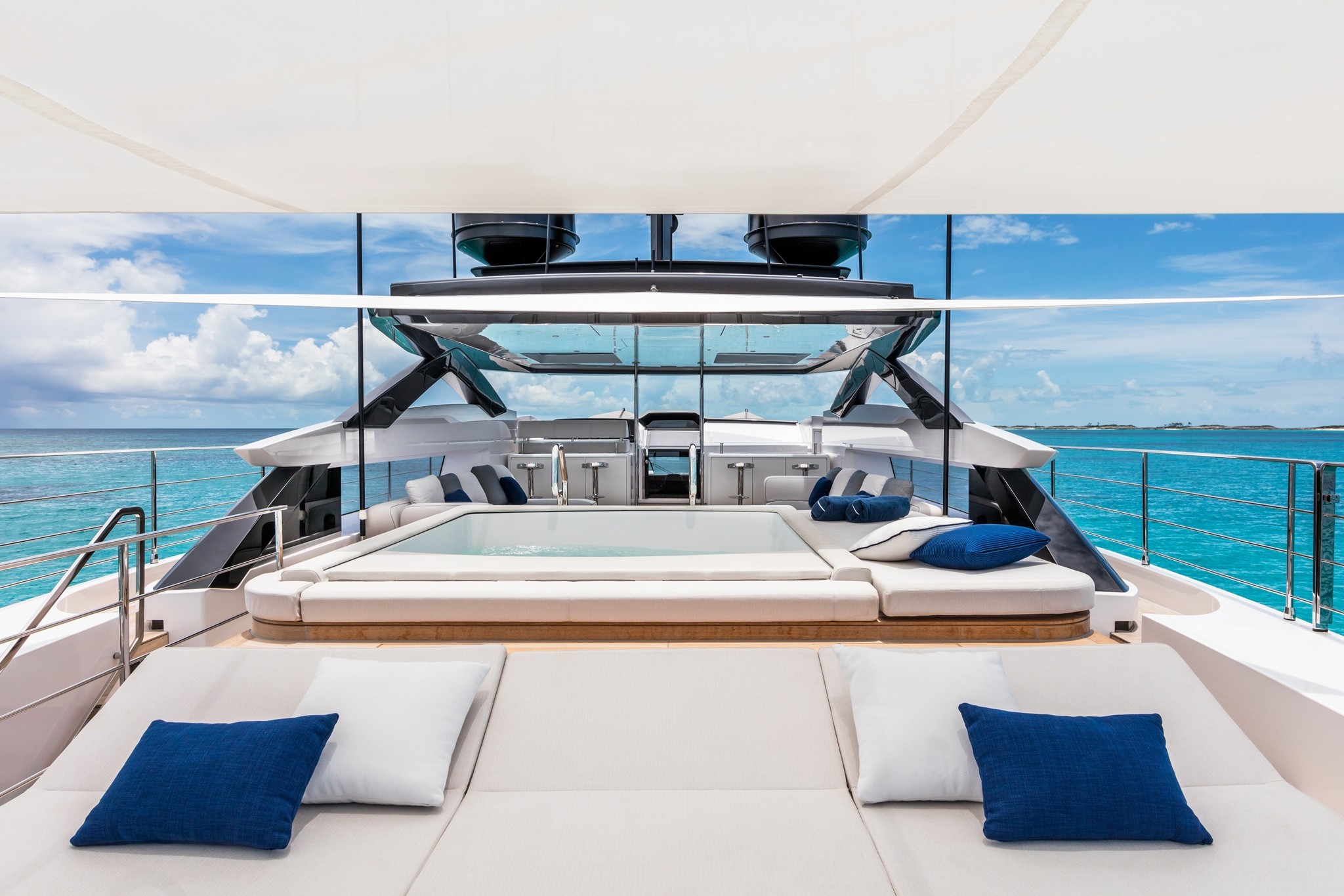 It features a spa pool as well as lounging, seating and dining areas. There are more lounging and seating areas on the foredeck, plus a spacious aft deck and a great beach club at the stern.