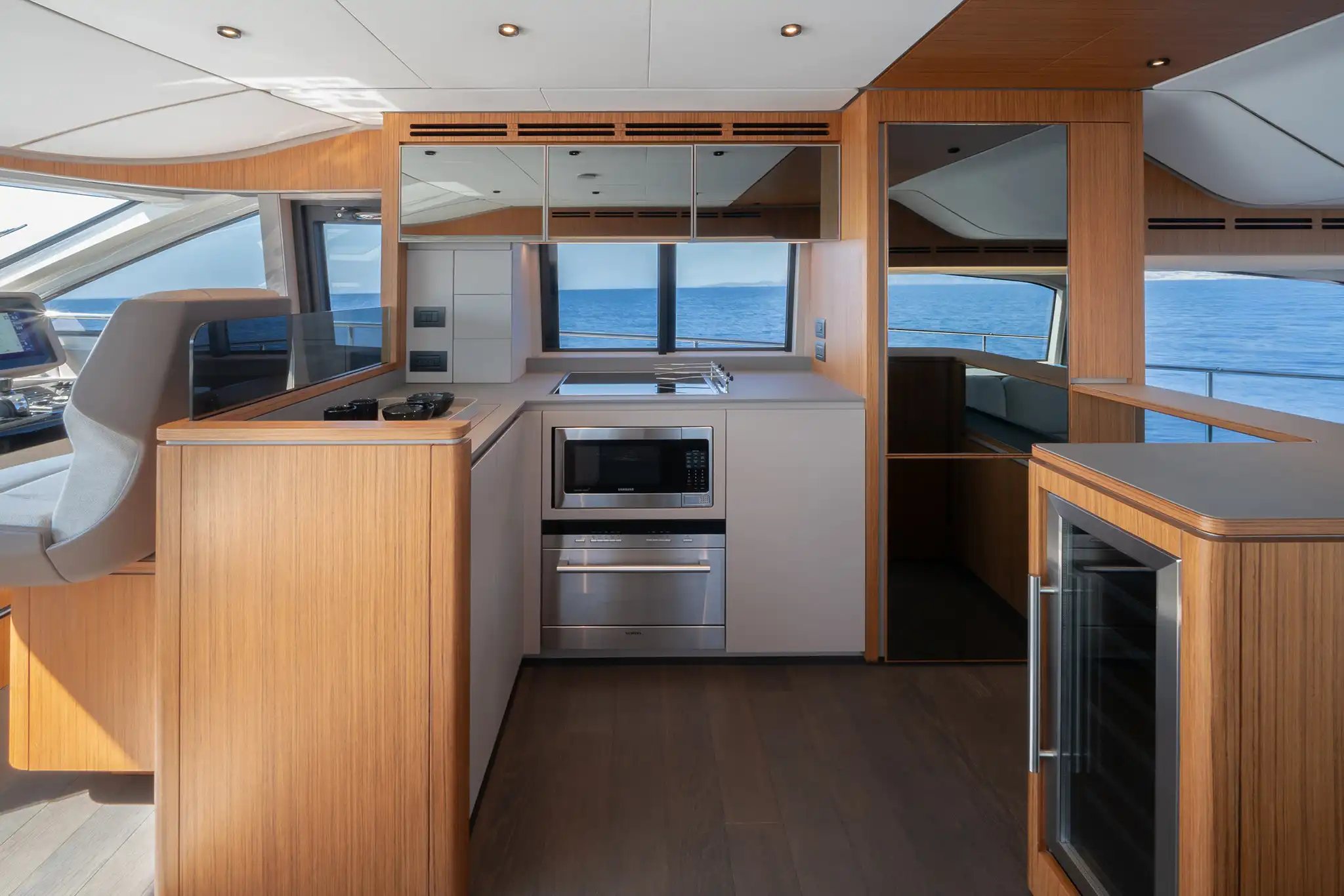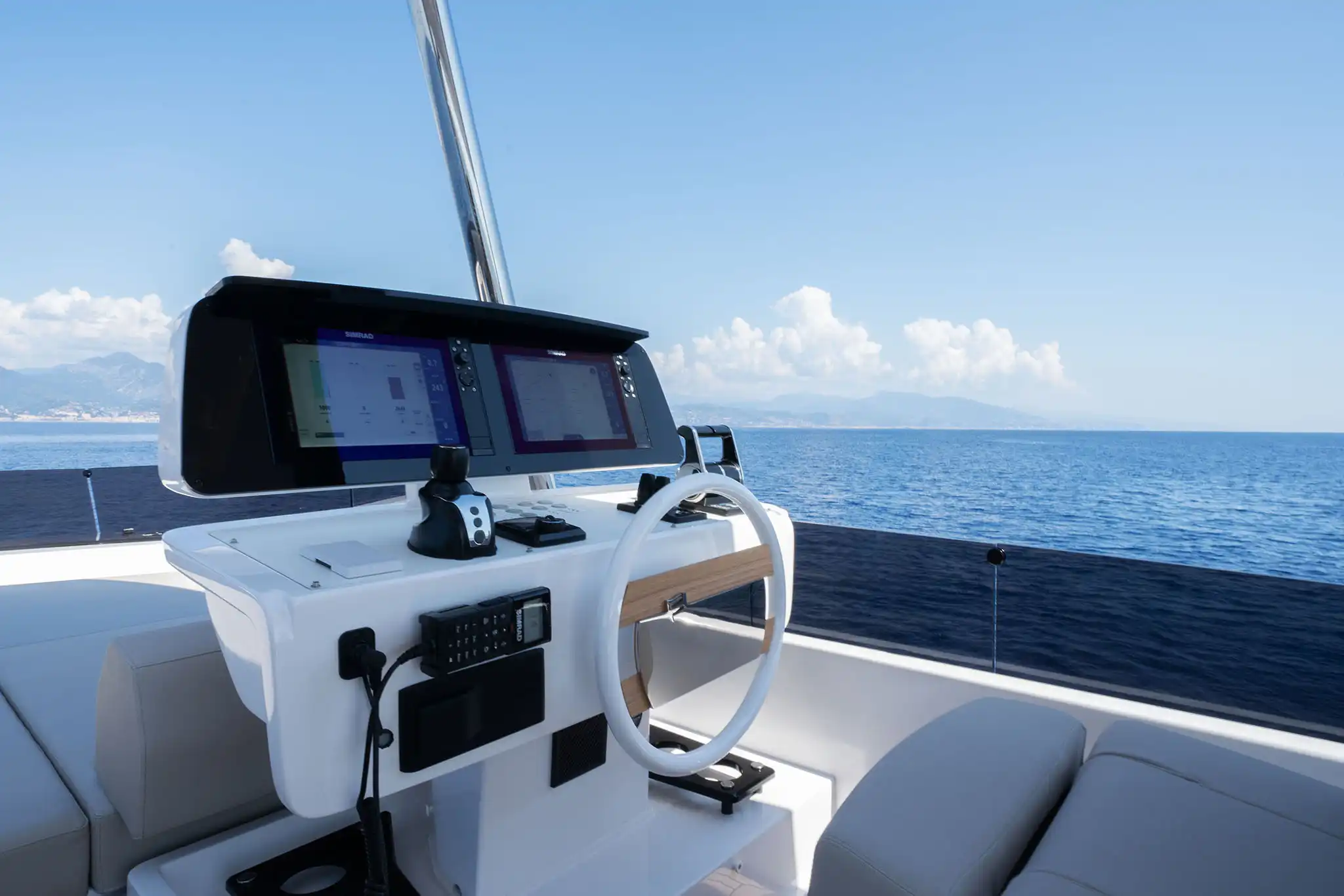 Handling the 670 is a particular pleasure, as it has Ferretti Yacht’s new electro-hydraulic steering system which is as light as a sportsboat and also very precise. For precision manoeuvring that will astound onlookers, there's even the option for a joystick control capable of spinning the boat on the spot or manoeuvring it sideways!
