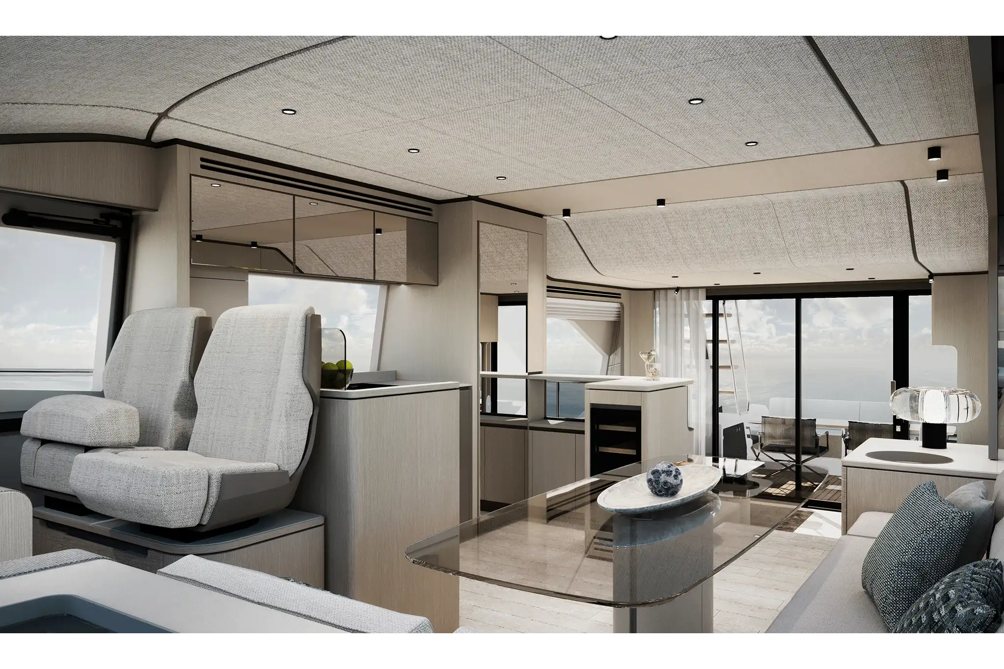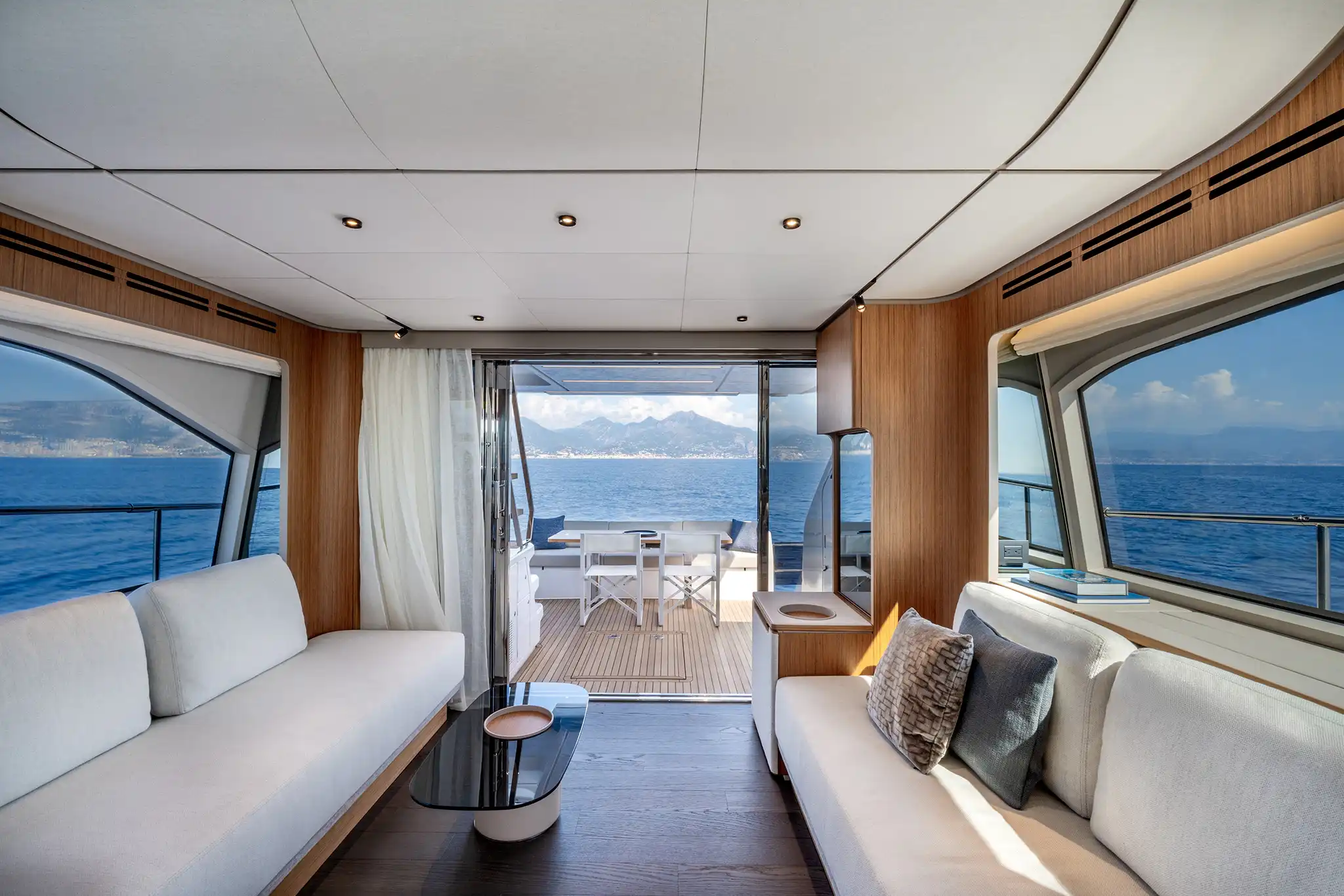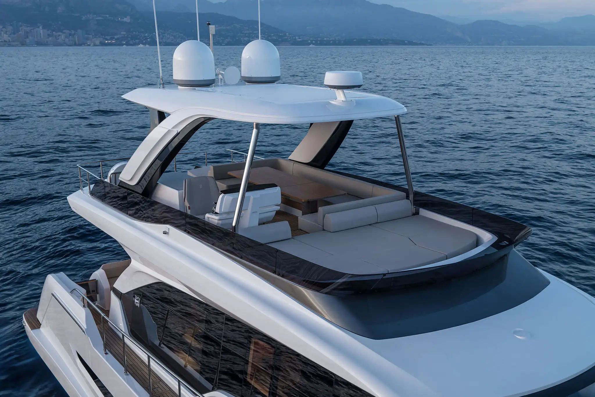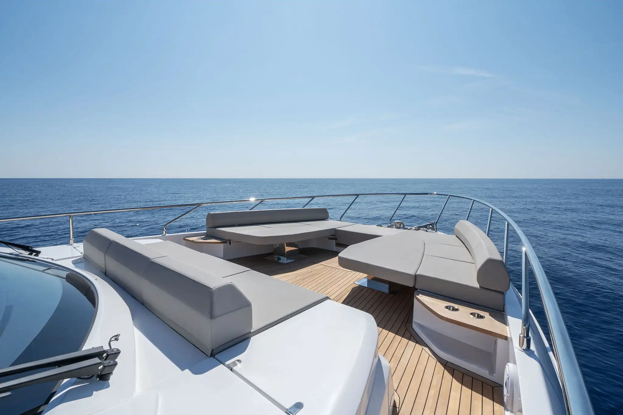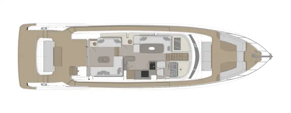 Outside, the 670 offers some superb seating and lounging spaces for her size. The 25m² flybridge is the best in its class, and has the option for a hardtop. Up front, almost the entire foredeck is given over to a delightful seating area with sofas, tables and large sunbeds.
