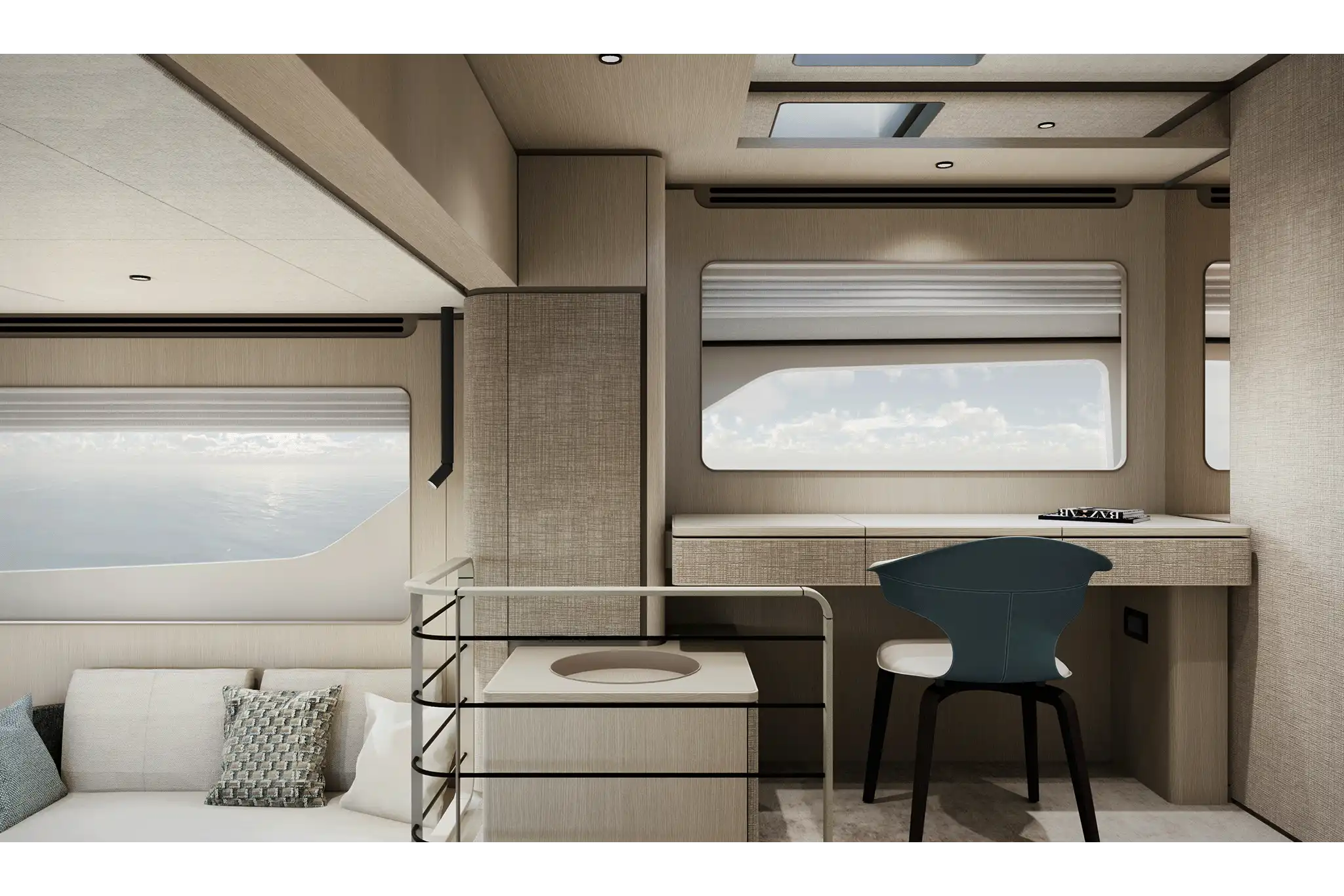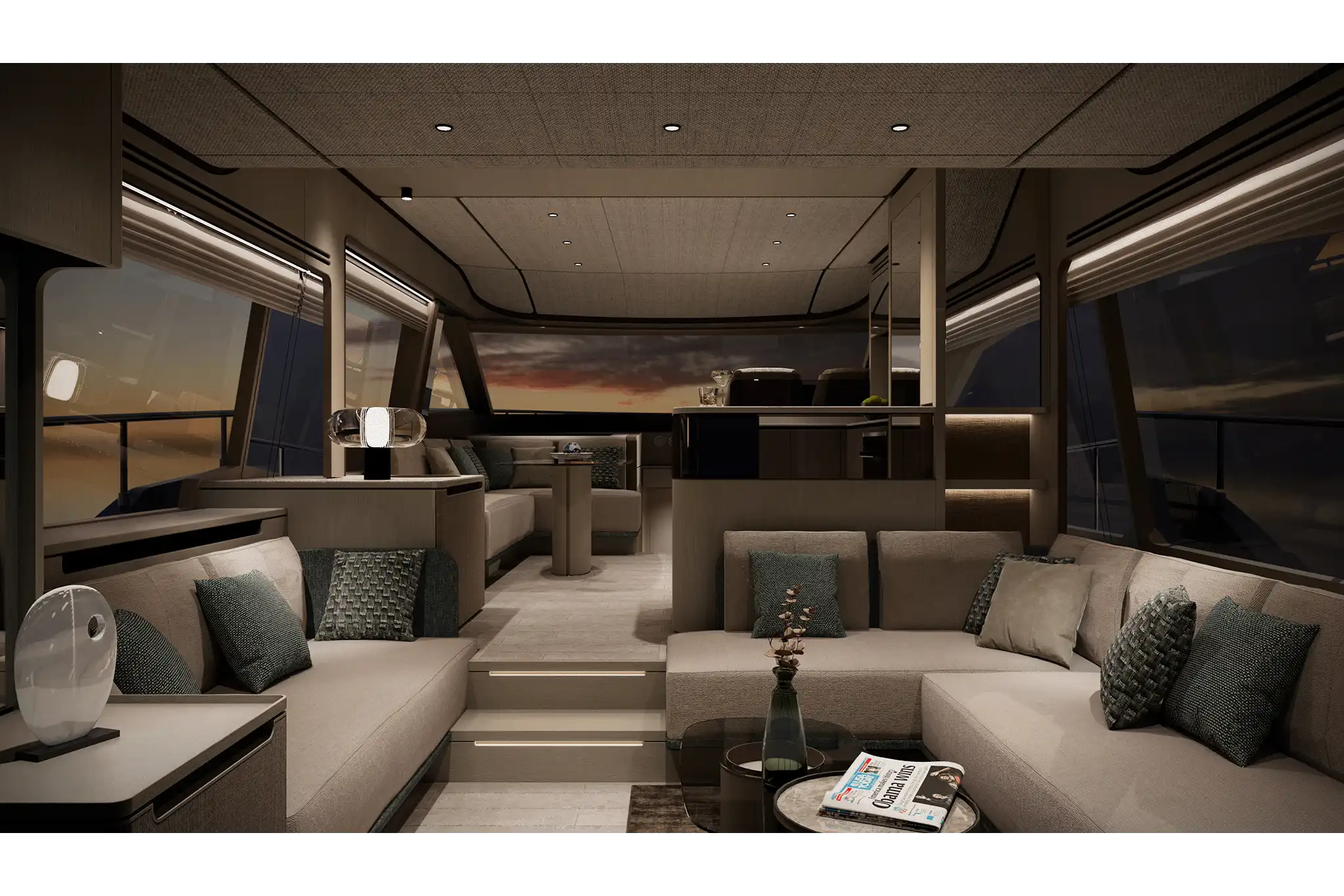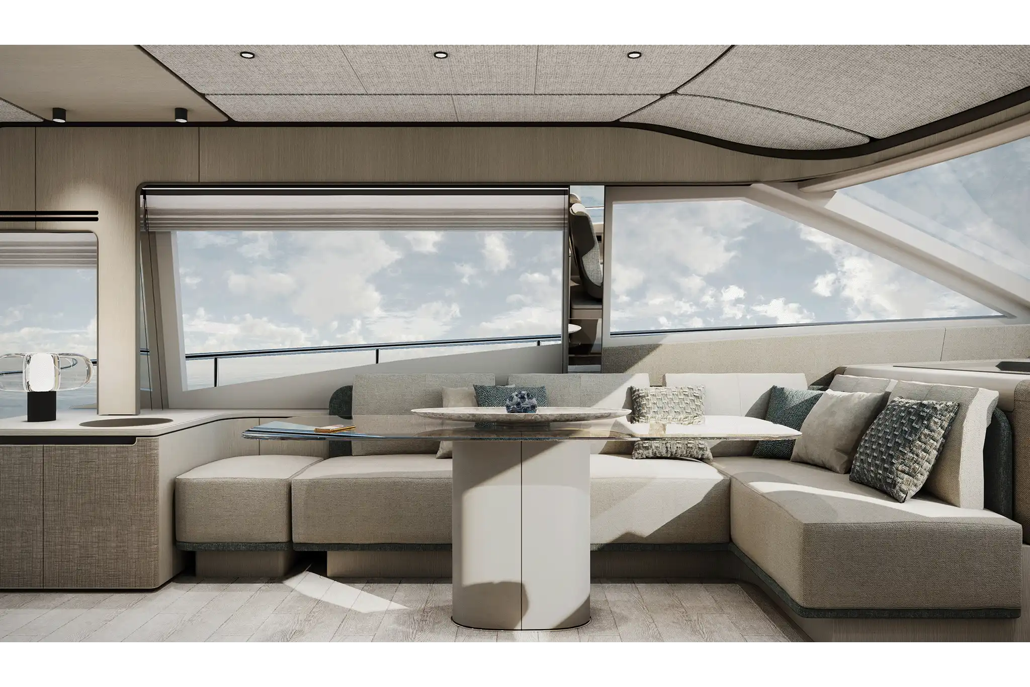 The master suite has been re-designed to include a new wardrobe in the entrance area and larger windows that let in natural light and add more to the panoramic view. Accommodation comprises a sumptuous five double cabin layout for ten plus three crew cabins for five crew. The lower deck is devoted entirely to guests and crew. The guest area has four cabins consisting of two mirror-image VIP cabins aft and two guest cabins forward, one of which fitted with separable and pullman beds. All the suites on the lower deck have an en-suite bathroom.