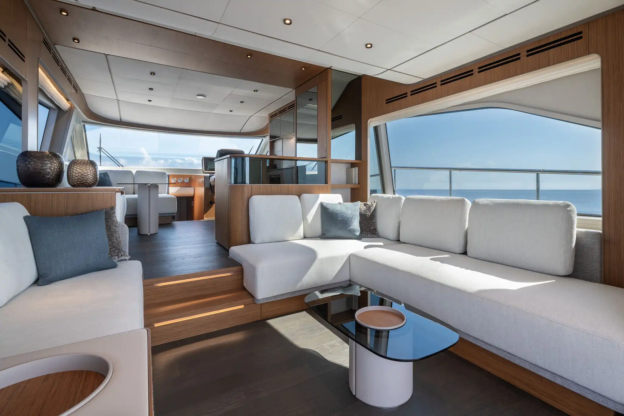 If the 670 strikes you as rather good looking, that’s because her exterior was styled by the renowned Italian designer Filippo Salvetti. As ever with Ferretti Yachts, the top priority is to create an exceptional on-board experience, and the huge windows incorporated into Salvetti’s design, on the main and lower decks, are a key part of that. The bright, open feeling on board is an absolute delight.