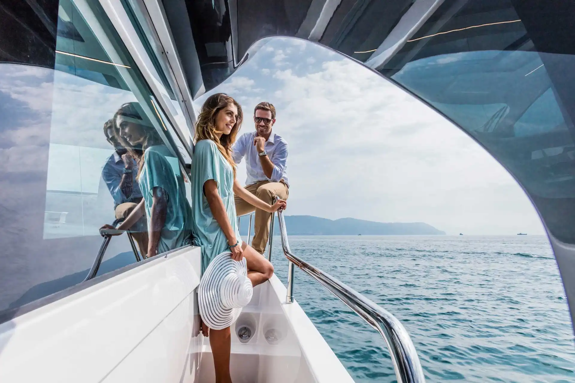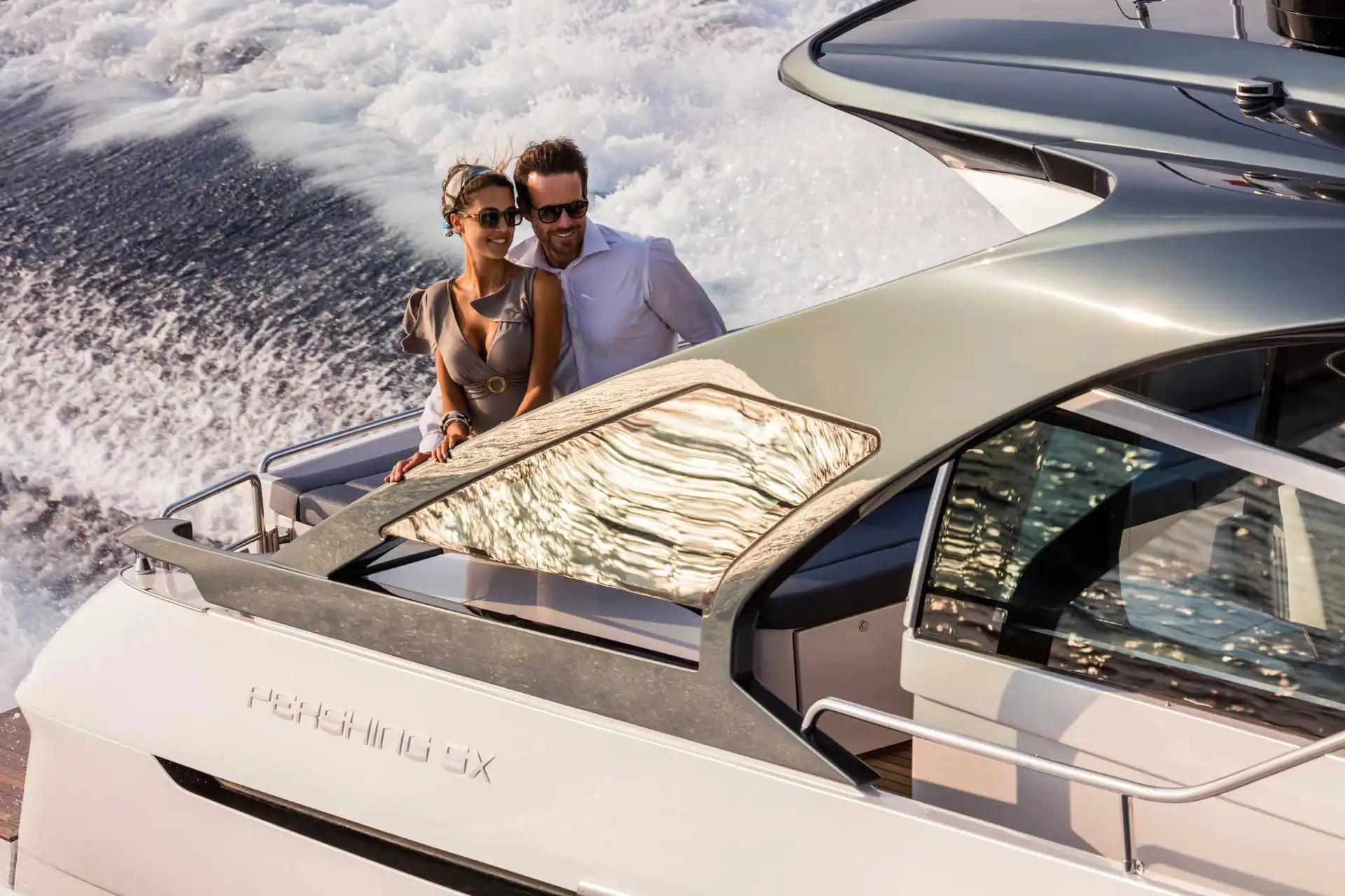 If you like the Pershing style, but you don't need the 45-knot performance of surface drives, the Pershing 5x could be what you're looking for. The 5x is powered by a pair of smooth, quiet, 725hp Volvo IPS drives.