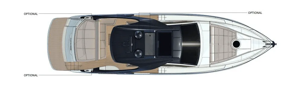 The profile of the 5x displays the very latest Pershing styling, including the arching aerofoils that sweep back from the coachroof to the stern and effectively channel the air flow to deflect spray away from the aft cockpit.