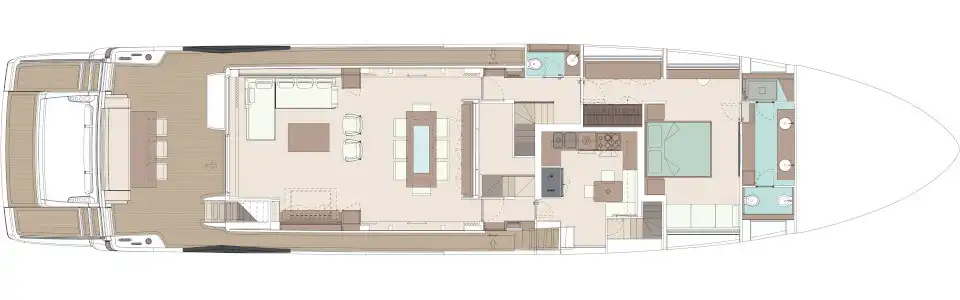 A wider, more luxurious evolution of the Corsaro with enhanced spaces and beach club.