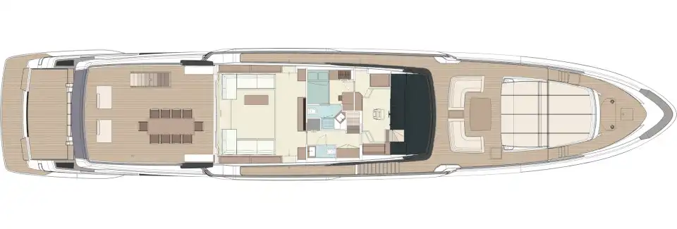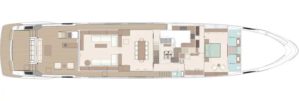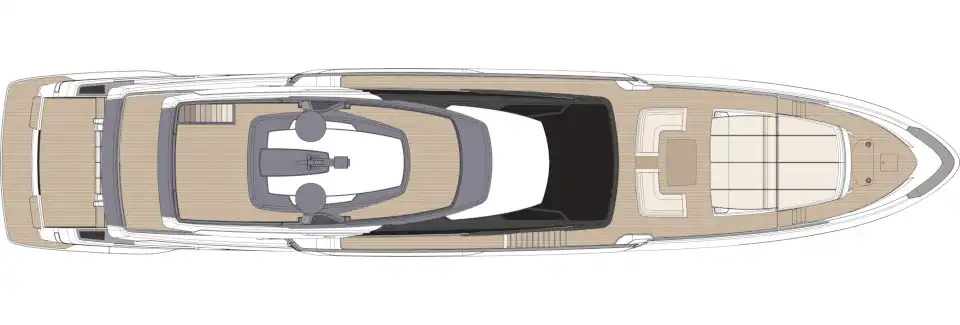 The sun deck hardtop enables you to manage the shade as you wish. On the main deck, in addition to the delightful stern beach club area and versatile aft cockpit, the elevated bow provides a convivial wraparound breakfast or lunch venue, a vast sunpad and an indulgent hot tub.