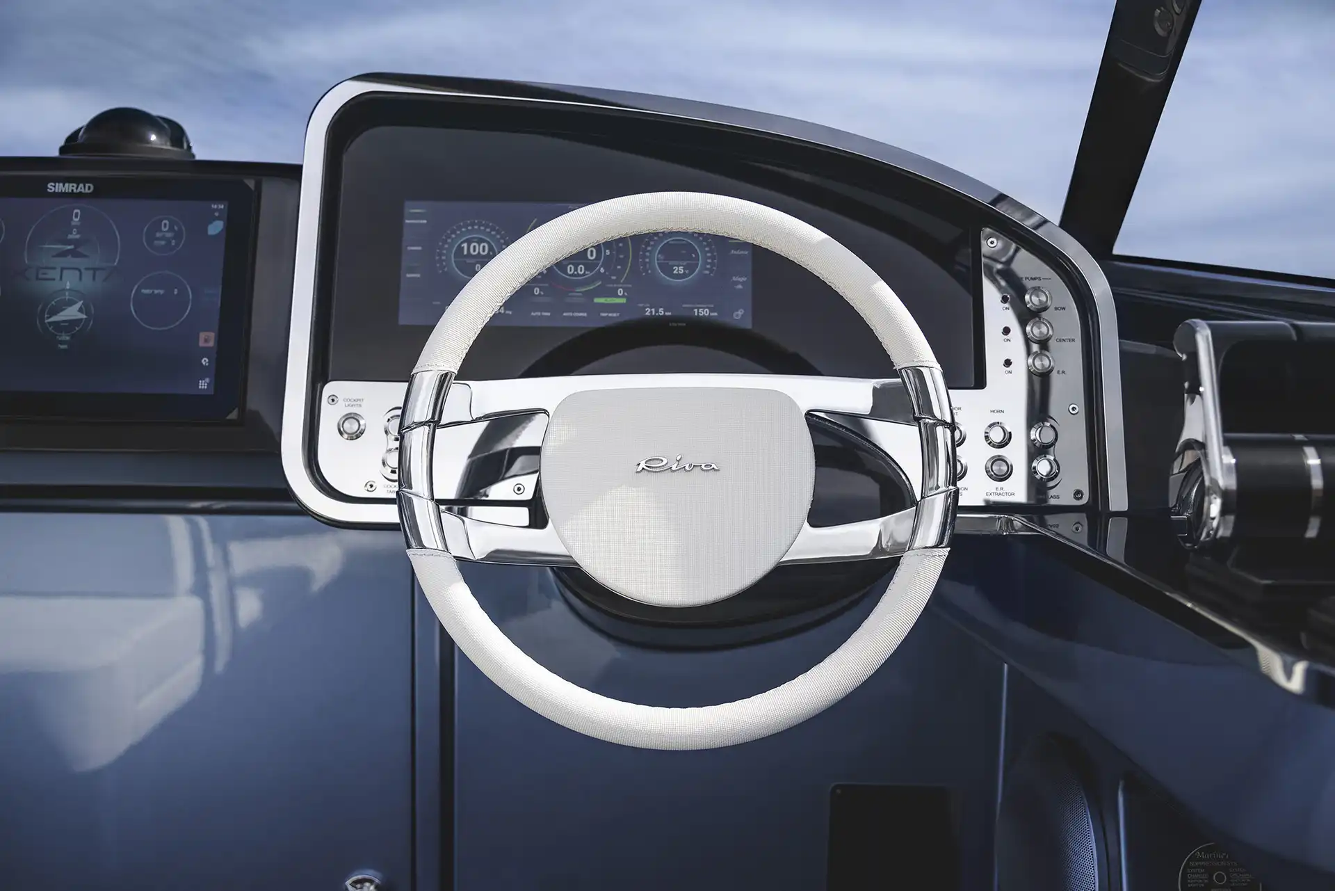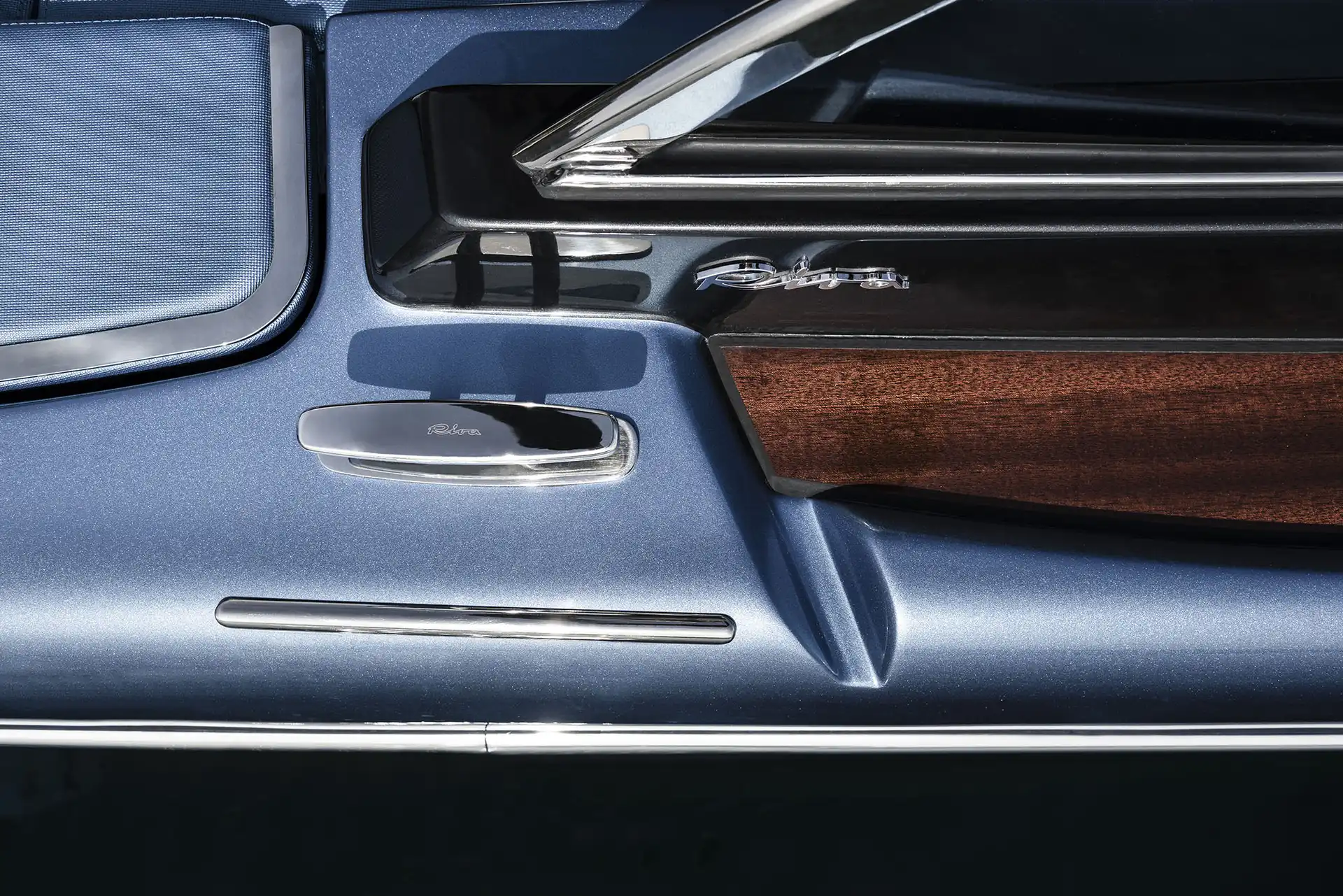 The deck, cockpit and helm station feature a completely new design, while the colour of the first hull is a fresh departure for Riva, a California Sky Blue that beautifully complements the elegant aquamarine style-line featured on all boats in the Riva range.