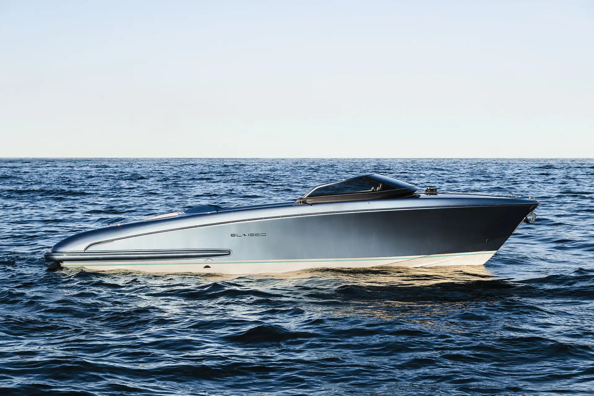 With a power output of 250 kW, peaking at 300 kW, the Parker GVM310 delivers a cruising speed of 25 knots and a self-limited top speed of 40 knots, with an acceleration curve significantly steeper than that of a similarly sized boat powered by an internal combustion engine. For optimum stabilization underway, the El-Iseo has autotrim control for the stern-drive engine and a Zipwake interceptor for trim correction.